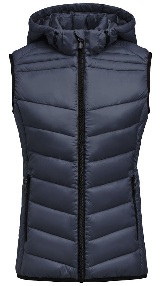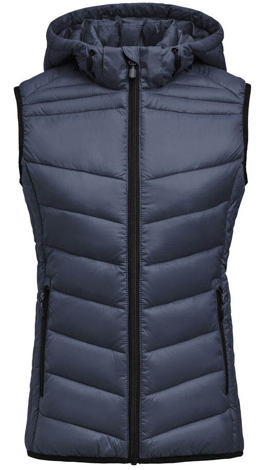Mit abnehmbarer Kapuze und elegantem Steppmuster passt diese ärmellose Daunenjacke perfekt zu einem Pullover, T-Shirt oder Hemd. Entworfen, um personalisiert zu werden, bietet sie auf der Brustfläche idealen Platz, um Ihre persönliche Note zu hinterlassen.