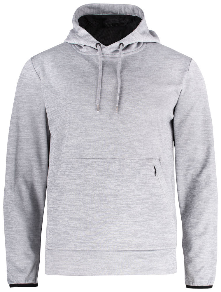 Ein sportlicher Kapuzensweater aus weichem, elastischem und komfortablem Polyester. Kapuze mit Mesh gefüttert und Kordelzug, Känguru Fronttasche und eine versteckte Tasche mit Reissverschluss und Kopfhörerführung. 100% Polyester. Herren Gewicht: Solid 215 gm2, Melange 240 gm2