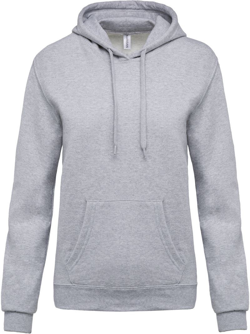 Damen Kapuzen Sweater Material: 280g/m², 80% Baumwolle, 20% Polyester Gefütterte Kapuze mit Kordel Ton-in-Ton, Set-In Ärmel, Strickbündchen an Ärmel und Saum, Kängurutasche, innen angeraut, 40° waschbar, nicht trocknergeeignet, nicht chemisch reinigen Grössen: XS – XXL