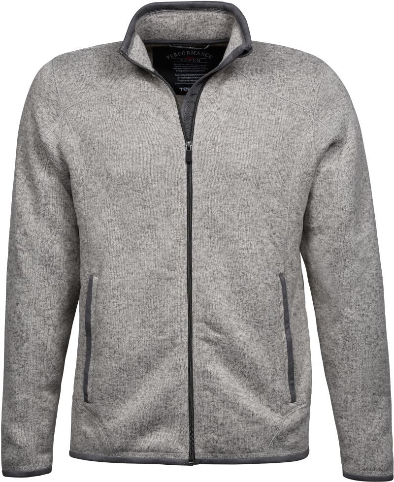 Strickfleece Jacke "Aspen" Material: 280g/m², 100% Polyester Strickfleece Figurbetonter Schnitt, Melange-Strickoptik außen, weiches Fleece innen, 2 seitliche Taschen mit Reißverschluss, Stehkragen, Flatlocknähte, Säume mit Trikotstoff eingefasst Größen: S – 3XL