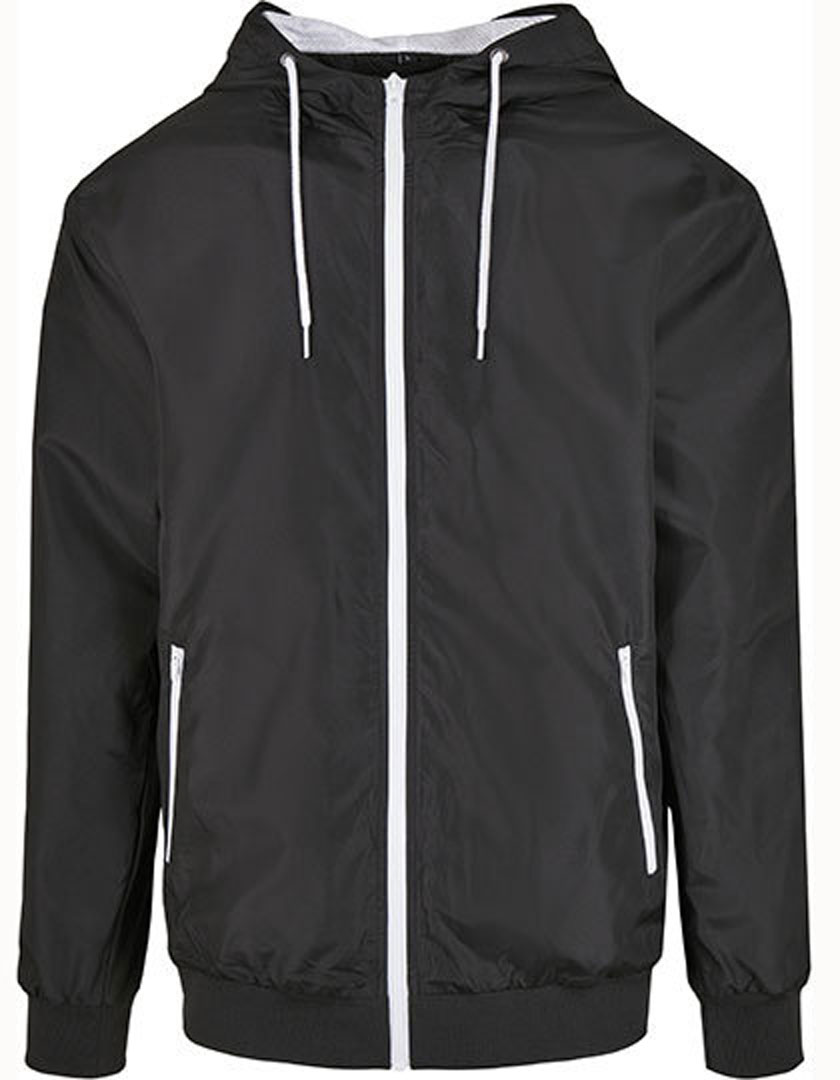Windjacke Material: 82 g/m², 100% Polyester 63% Polyester / 37% recycelter Polyester, Mesh-Futter und Kapuze, Ripp-Bündchen am Saum und an den eingesetzten Ärmeln, Regular Fit, durchgehender Reißverschluss Grössen: S – 5XL