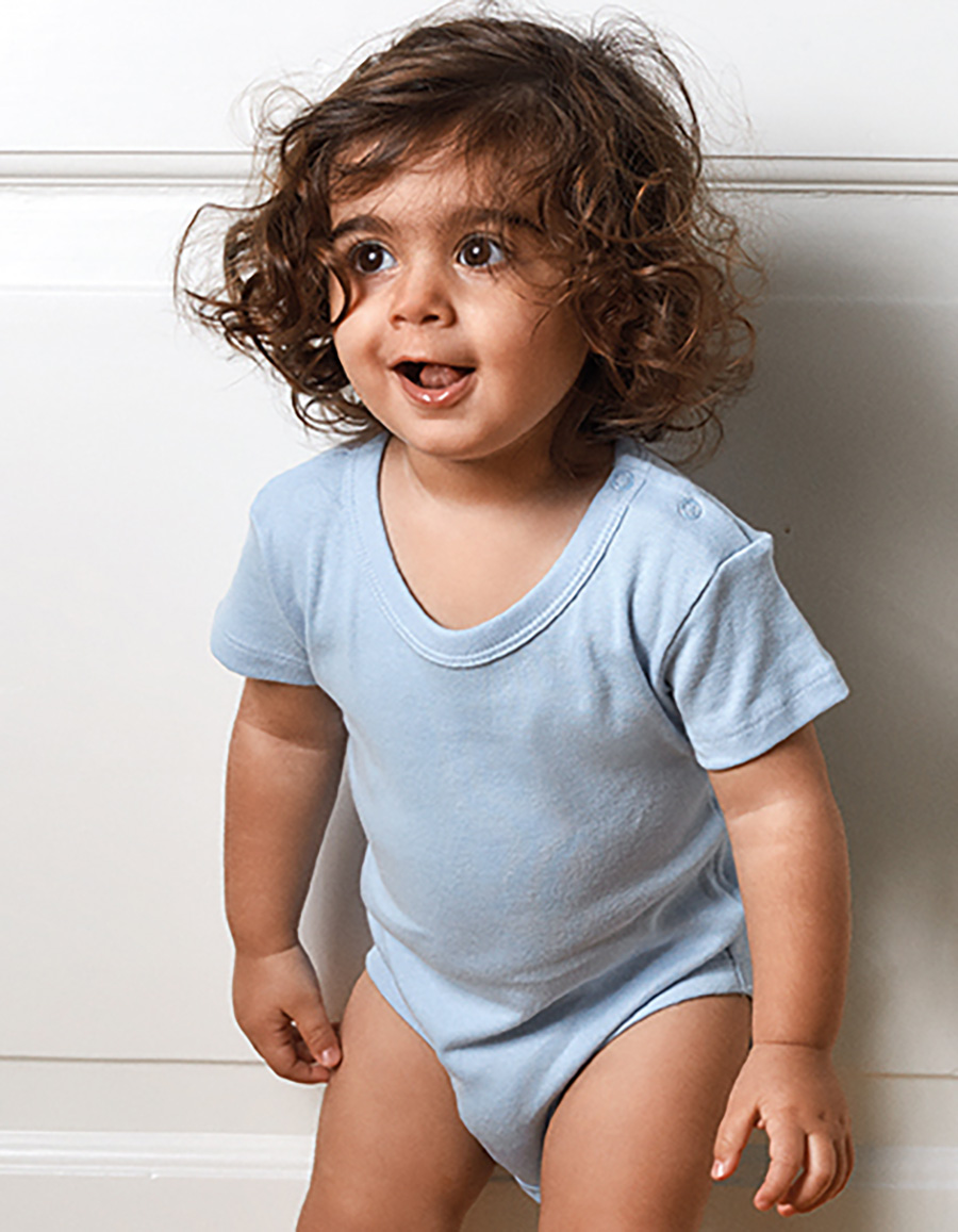 Baby Body Material: 180g/m², 100% gekämmte ringgesponnene Baumwolle 1x1 Feinripp, dehnbar, überlappender, bequemer Halsausschnitt, Rippeinfassung an Hals, Arm und Bein, Druckknöpfe im Schritt Größen: 3-6 – 18-23