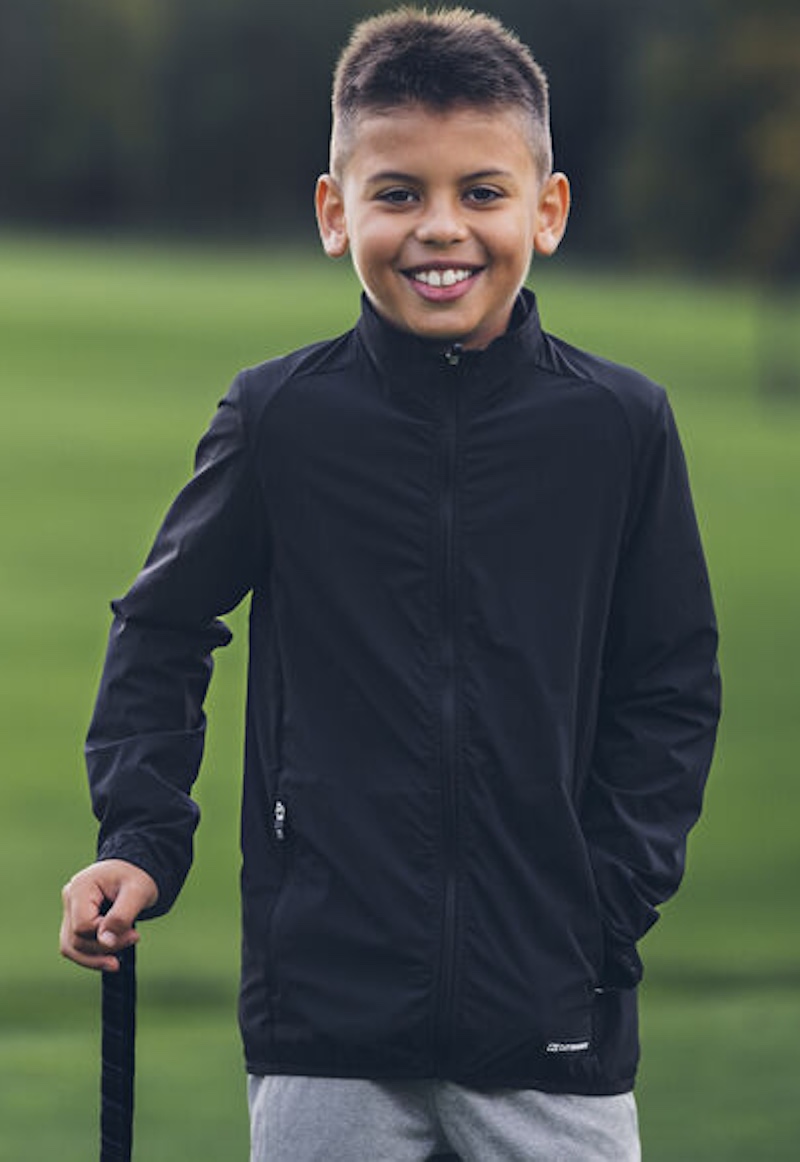 leichten Kinder Windjacke an, die aus hochelastischem Stoff gefertigt ist und