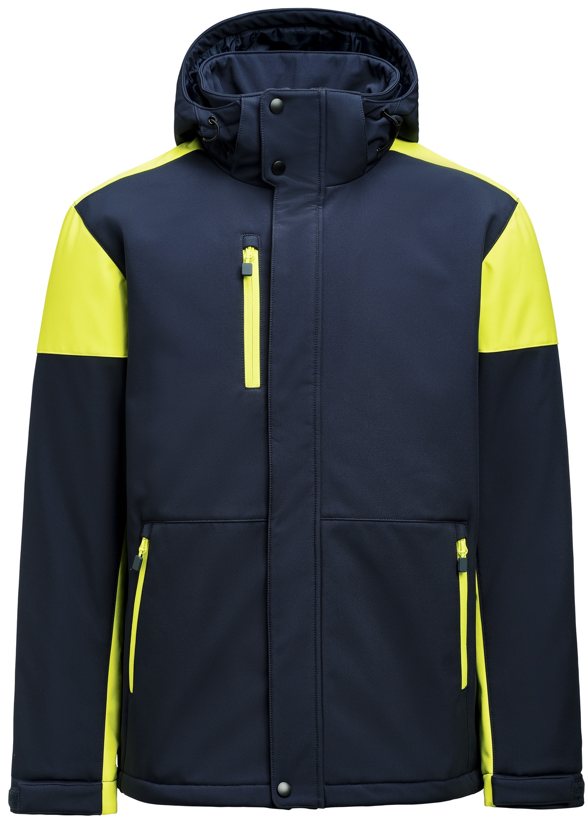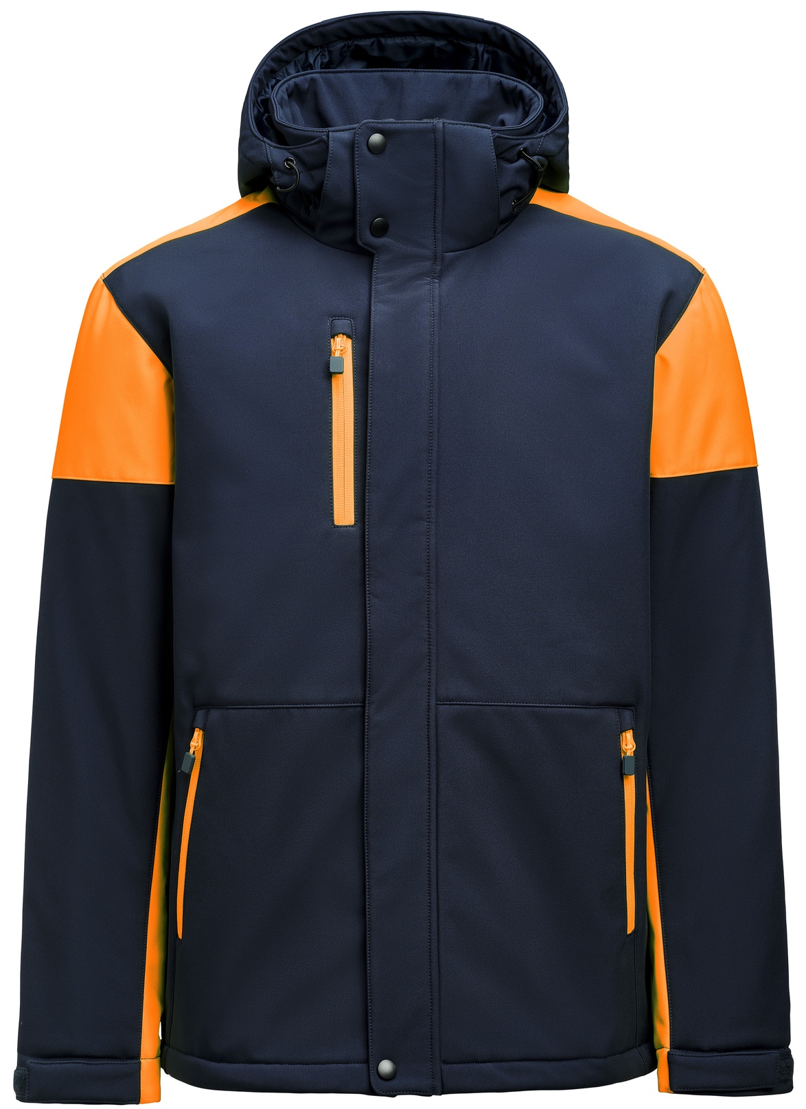 2-farbige, gefütterte Softshell Jacke mit entfernbarer Kapuze.
