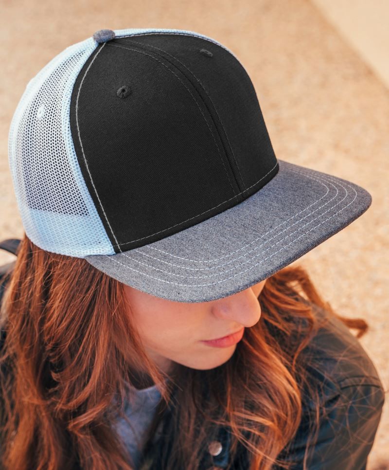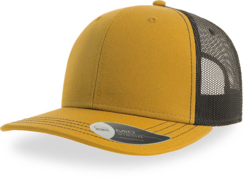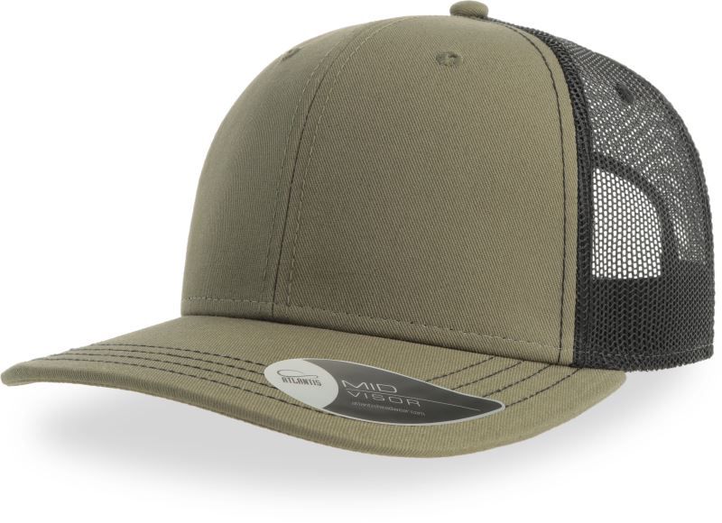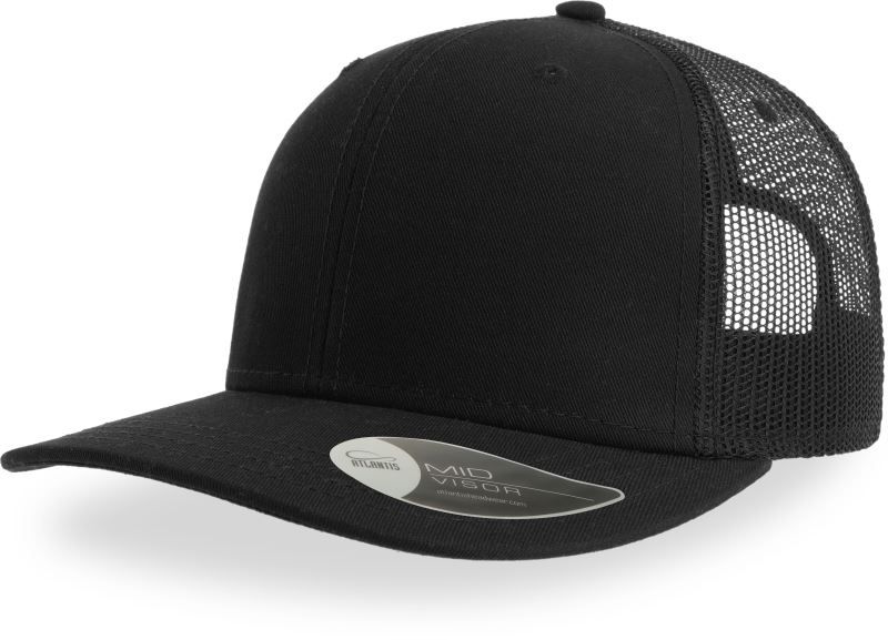 6 Panel Trucker KappeNachhaltiges Nachfolge-Modell zu Sonic (Artikel: AT679) Leicht gebogener Schirm, recycelter Buckram, Schweissband, Frontpanele laminiert, gestickte Luftlöcher, recycelter Snapverschluss, TearAway Label, Handwäsche, nicht bügeln, nicht trocknergeeignet, nicht chemisch reinigen Größen: onesize280g/m², 100% Baumwoll-Twill, Mischgewebe aus recycelter und Bio-Baumwolle, Seiten und Rückseite: 100% recyceltes Polyester Netz