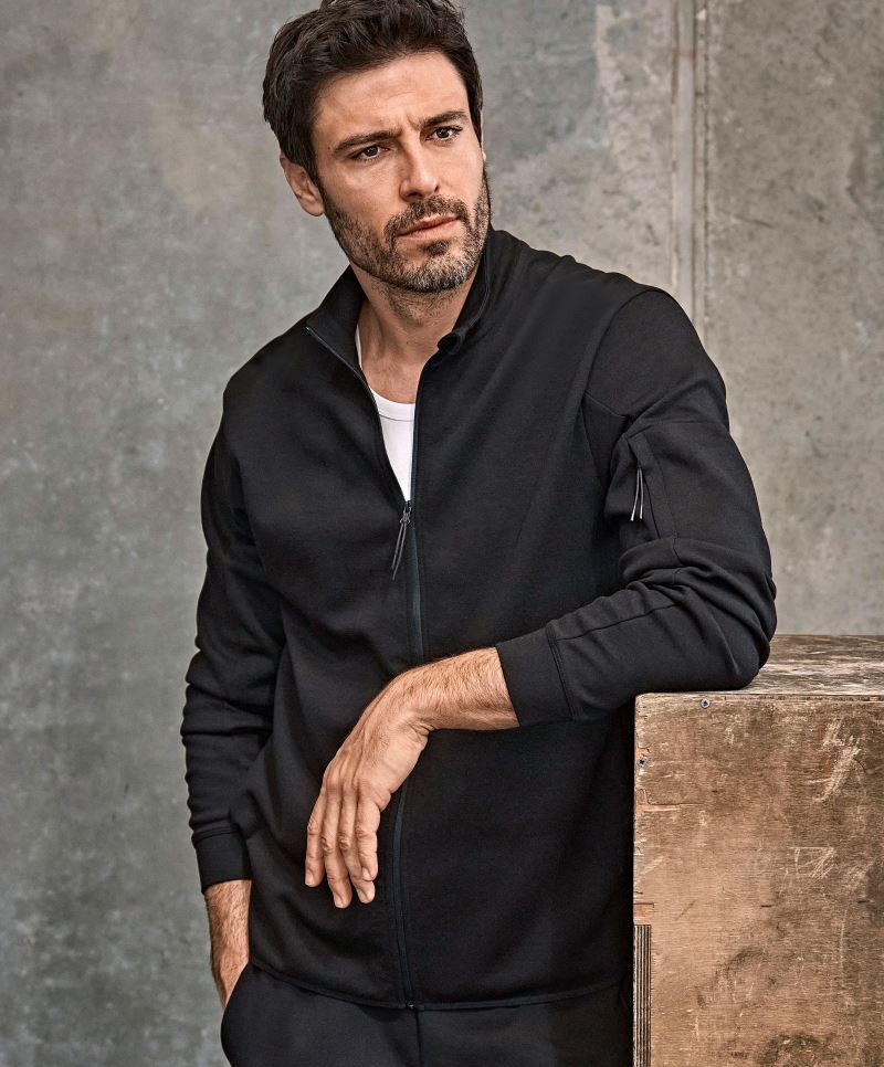 Sweatjacke "Athletic" Material: 320-330g/m², 60% gekämmte ringgesponnene Baumwolle, 40% Polyester, silikongewaschen Ärmelbündchen aus gleichem Material, elastische Einfassung am Bund, SBS Reissverschlüsse, Ärmeltasche mit Reissverschluss, 2 offene Seitentaschen, weiches und langlebiges Material, 40° waschbar, nicht trocknergeeignet Grössen: XS – 3XL