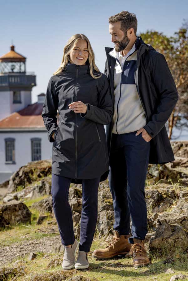 sowie einer abnehmbaren Kapuze. Das Damenmodell kann in der Taille mit