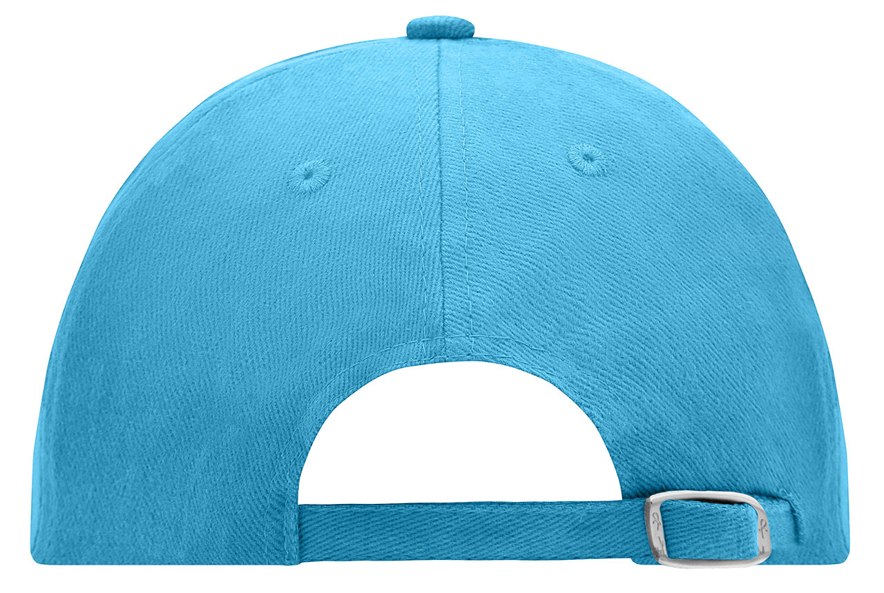 Fermeture boucle métallique argenté et oeillets brodés, coton brossé lourd, profil bas, 6 oeillets d'aération brodés, 8 surpiqûres sur la visière, Bande de transpiration doublée en satin, Marquage conseillé: broderie