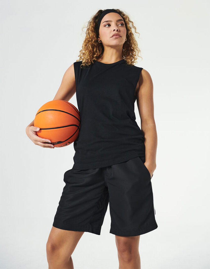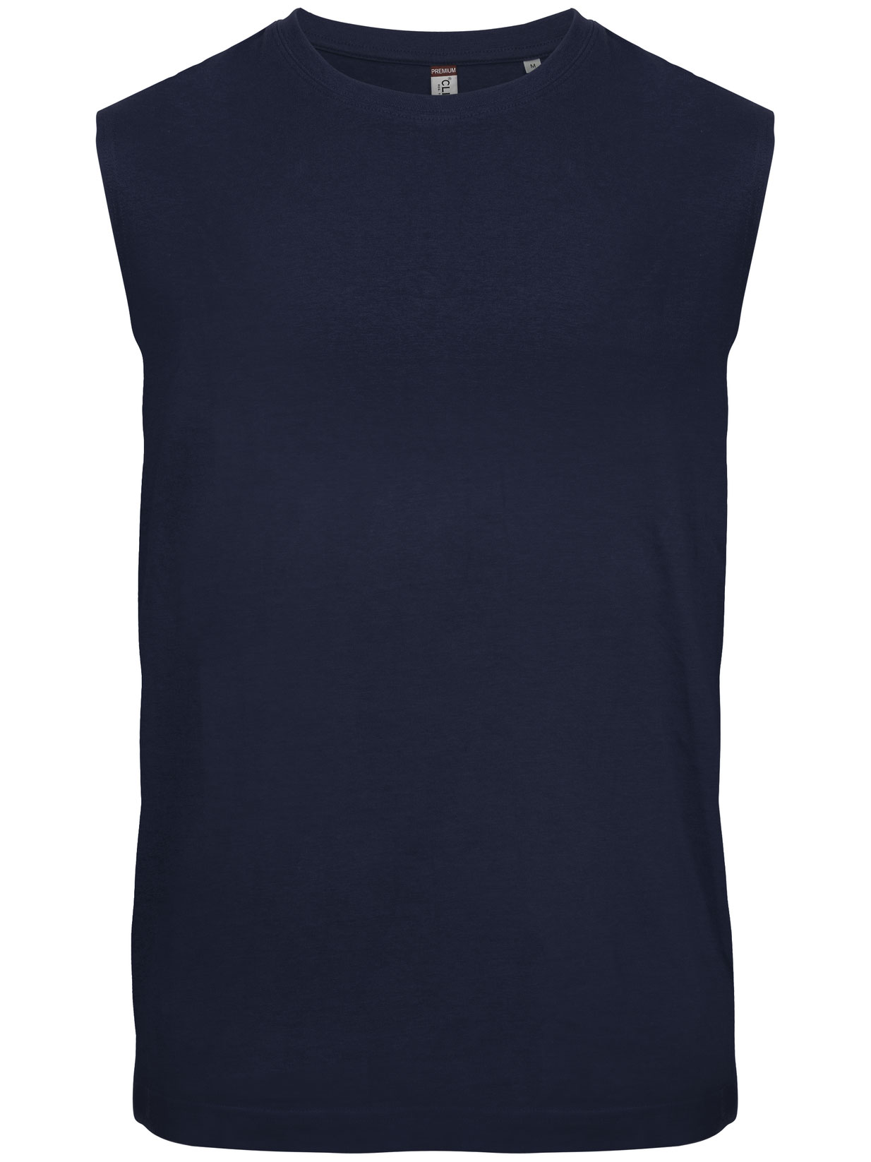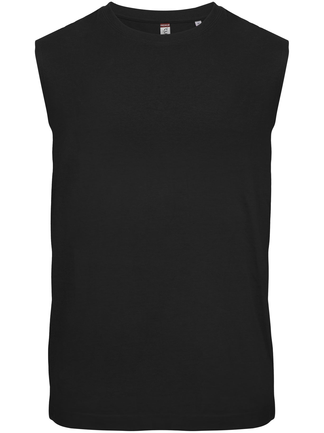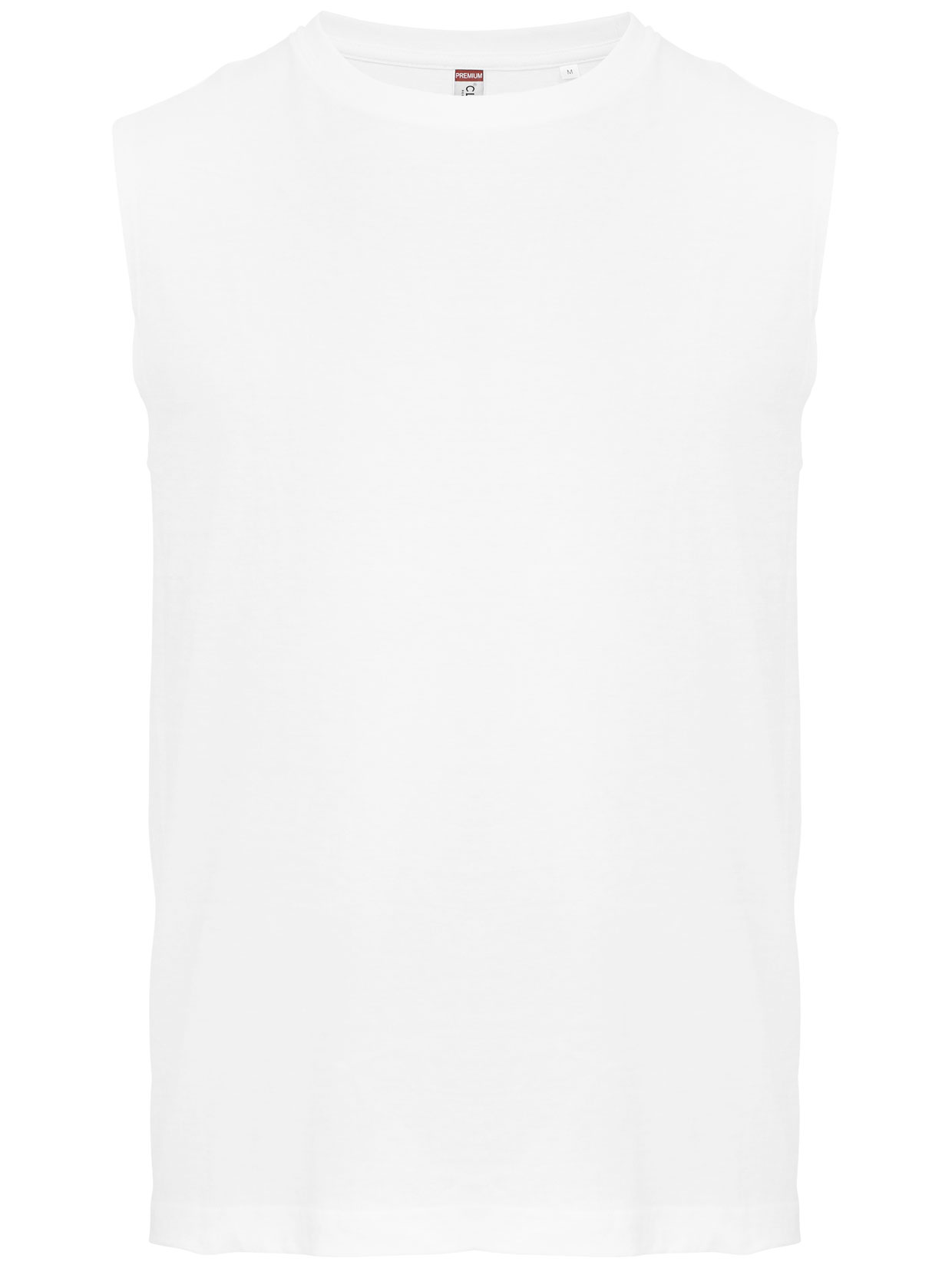 Un t-shirt sans manches unisexe, à la coupe nette. Tricoté en rond, avec