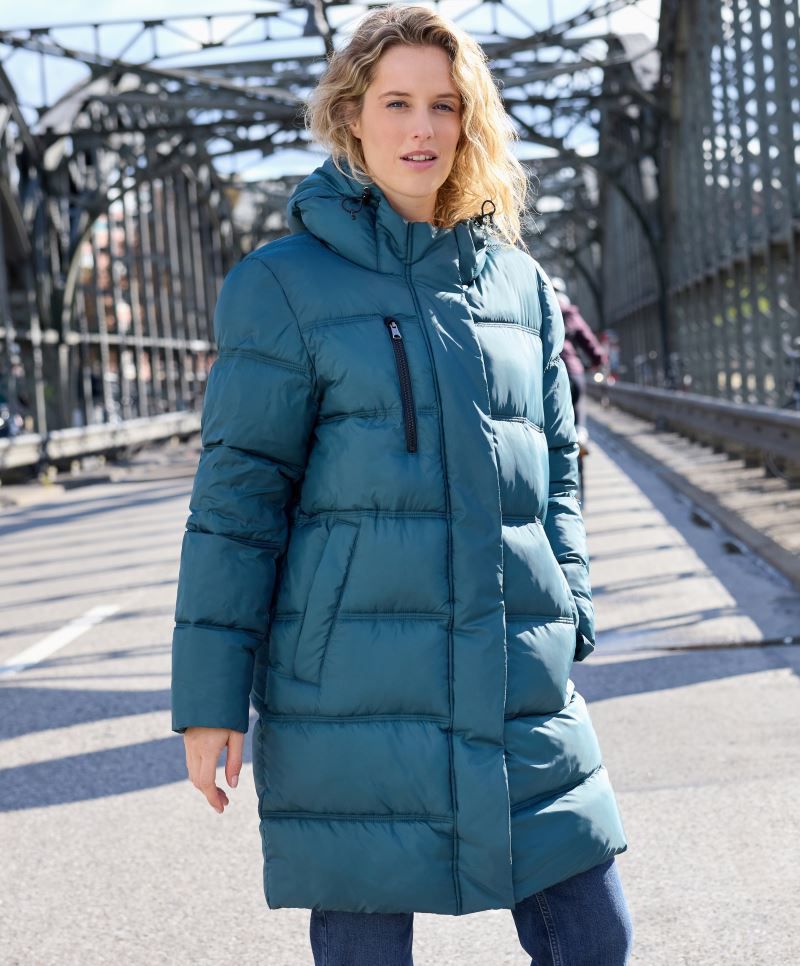Manteau d'hiver pour femmes Imperméable et anti-salissures grâce à BIONIC-FINISH®ECO, capuche réglable, poignets élastiques à l'intérieur, fermeture éclair double sens sur toute la longueur, 2 grandes poches intérieures, poche Napoléon, 2 poches latérales avec fermeture éclair, triple surpiqûres, lavable à 30°, lavage délicat, adapté au sèche-linge à basse température Extérieur : 42g/m², 100% polyester recyclé, rembourrage Sugenro® GRS, doublure : 41g/m², 100% polyester recyclé Tailles : XS - S - M - L - XL - XXL