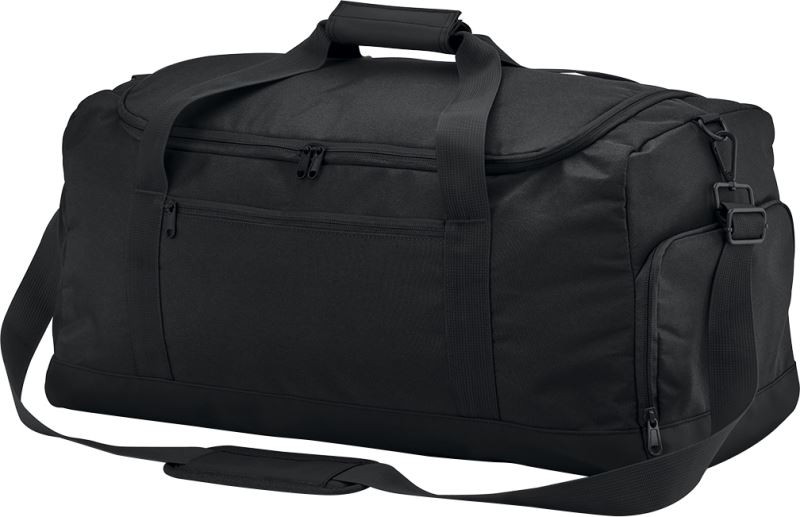 Bandoulière amovible et réglable, poignée rembourrée, fond avec revêtement PU, fermeture éclair à double sens, poche frontale zippée, poche en filet à l'extérieur, poche en filet à l'intérieur, compartiment à chaussures, étiquette TearAway, capacité : 40l, dimensions : 55x26x27cm,