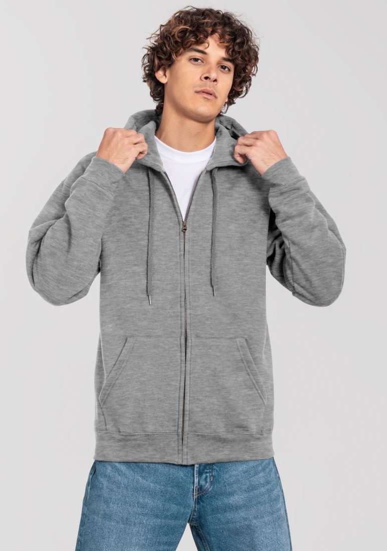 Coupe classique, capuche doublée avec cordon plat ton sur ton, bords-côtes aux manches et à la base avec Lycra®, fermeture éclair métallique dissimulée, poches kangourou, surface 100 % coton, intérieur brossé, utilisation de fibres durables CiCLO®, étiquette détachable, lavable à 40 °C, passe au sèche-linge à basse température