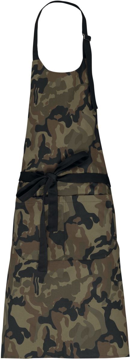 Boucle métallique au niveau du cou pour régler la longueur, grande poche avant, longues bandes au niveau des hanches, longueur : 90 cm, largeur : 76 cm