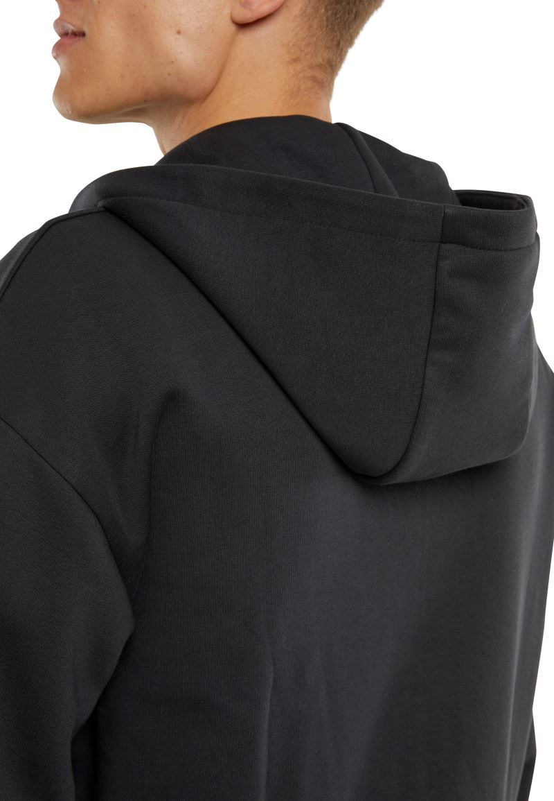 Coupe oversize, capuche doublée sans cordon, bords-côtes aux manches et à l'ourlet, poches kangourou, intérieur gratté, étiquette neutre pour la taille, lavable à 30°.