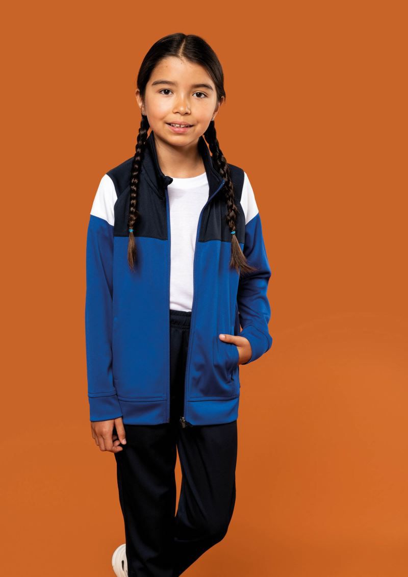 100% polyester interlock mat. Coupe droite. Col avec zip inversé en