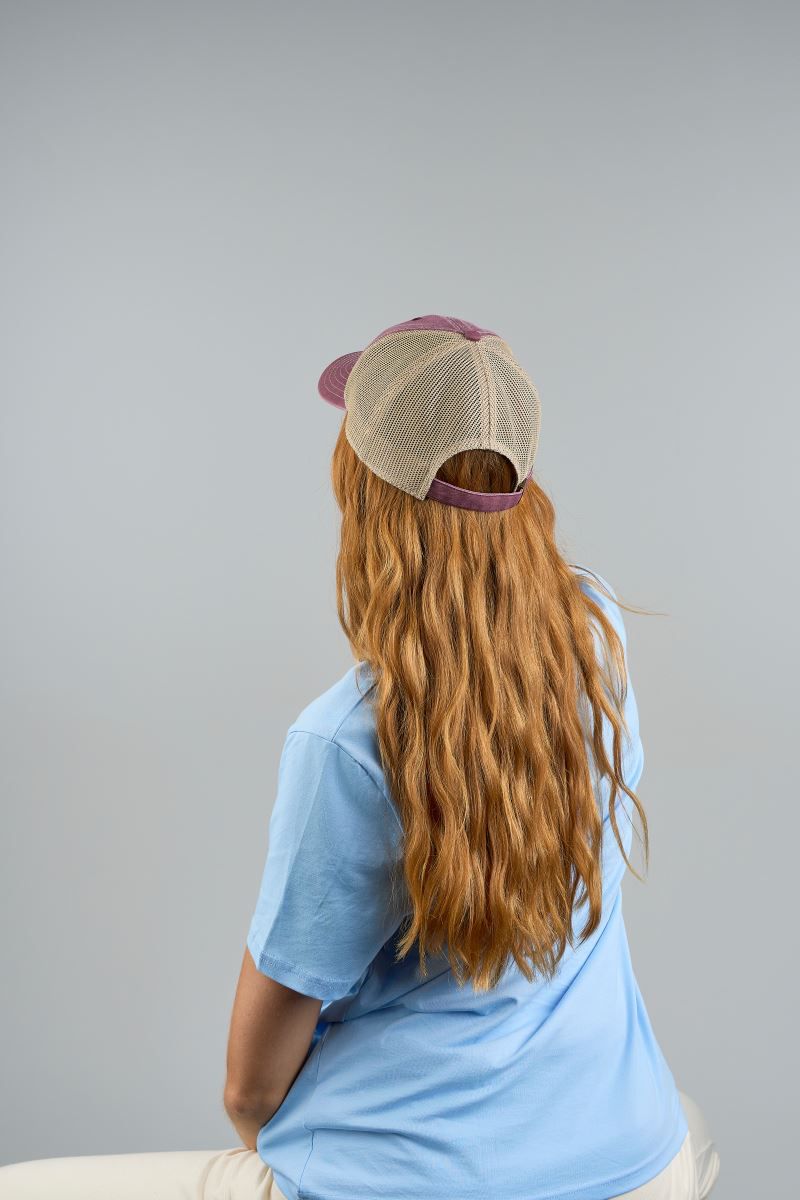 Teint à l'aide de pigments, intérieur de la visière en plastique recyclé, 6 coutures décoratives sur la visière, bandeau anti-transpiration en polyester recyclé, panneau avant non renforcé, profil de casquette moyen, trous d'aération brodés, bande en tissu avec fermeture métallique, filet doux, étiquette détachable, lavage à la main, ne pas repasser, ne pas mettre au sèche-linge, ne pas nettoyer à sec